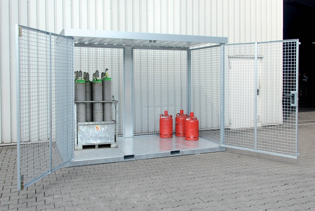 Abri grillagé pour 78 bouteilles de gaz en acier galvanisé à chaud.