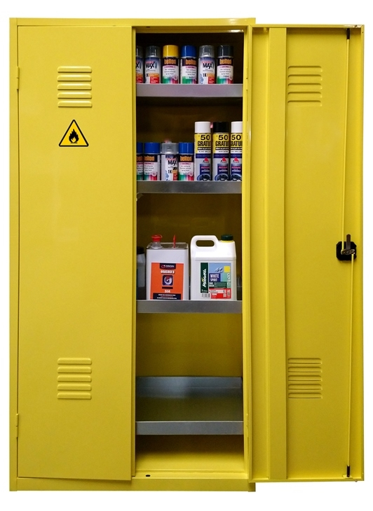 Armoire de sécurité pour produits faiblement inflammables. Acier simple paroi, 2 portes, 920 x 420 x H1800 mm.