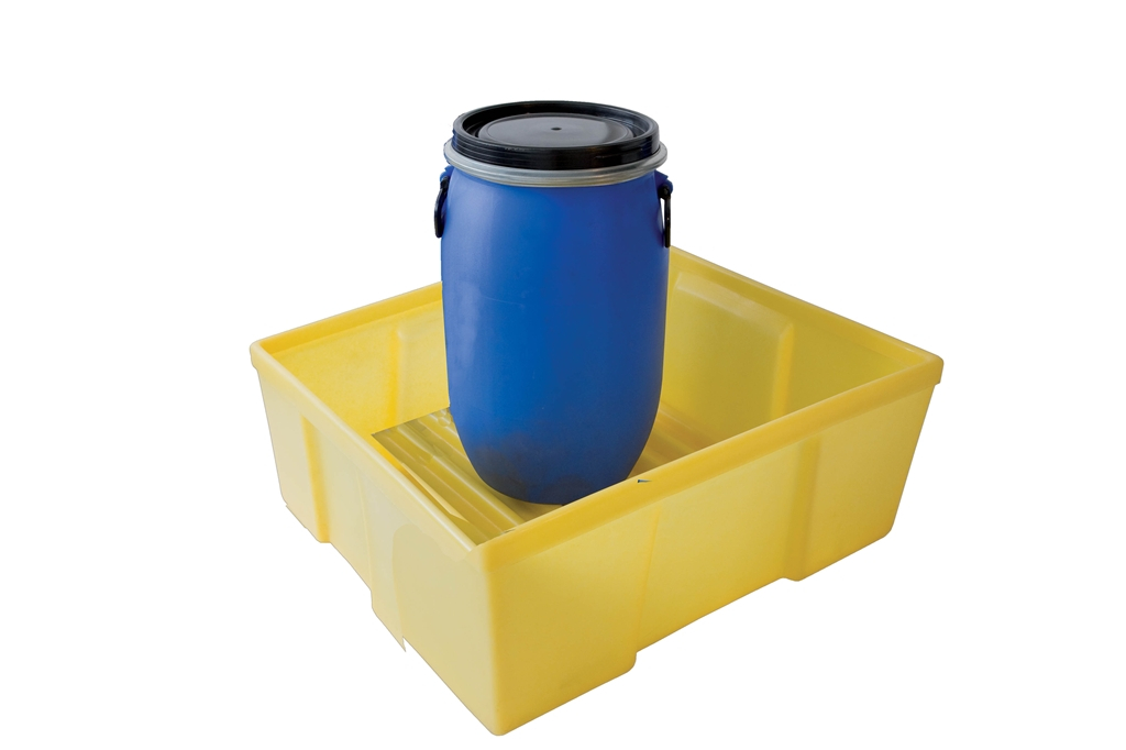 Bac de rétention en polyéthylène sans caillebotis pour le stockage petits flacons et bidons.
