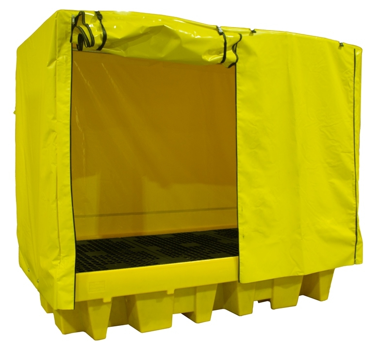 Bac de rétention fermé en polyéthylène pur pour le stockage de 2 cuves de 1000 litres ou 8 fûts debout de 220 litres, caillebotis en polyéthylène amovible.
