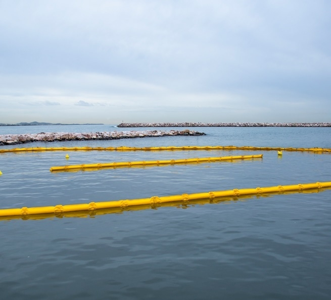 Barrage de confinement type boudin résistant et rigide H920 mm. Permet au barrage de conserver sa forme et d'assurer une excellente adhérence aux vagues ou remous.