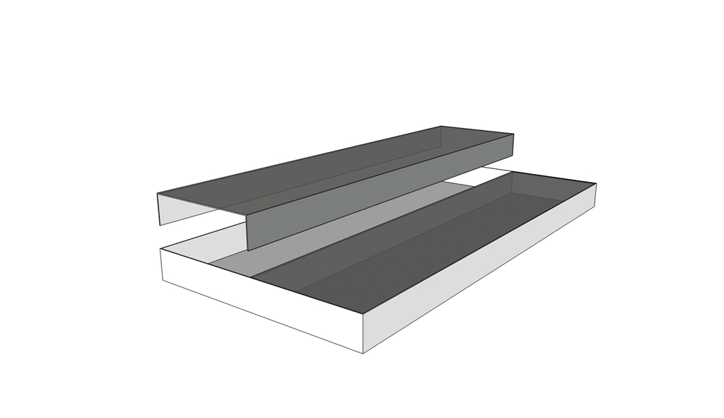 Bac en acier galvanisé avec caillebotis, sans pieds. Dimensions : 1275 x 600 x 80 mm.
