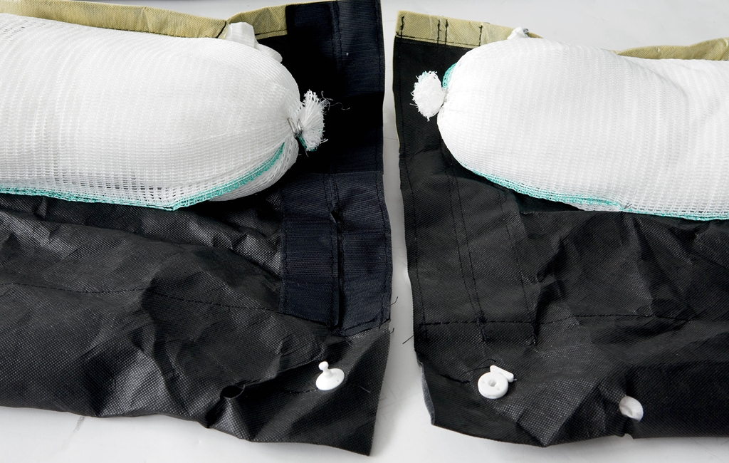 Barrage à jupe, absorbant hydrocarbures, spécial dépollution, pur fibre de polypropylène, 20 cm x 3 m. Big bag de 6 barrages.