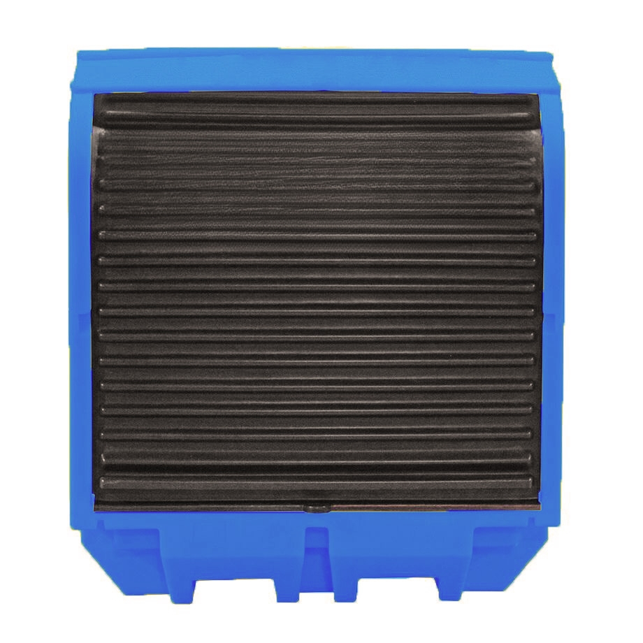 Bac de rétention conique en acier galvanisé pour le stockage de deux fûts debout de 220 litres, caillebotis amovible en acier galvanisé avec pieds en U d'une hauteur de 100 mm. Dimensions: 1220 x 815 x H 345 mm. Capacité de rétention : 220 litres