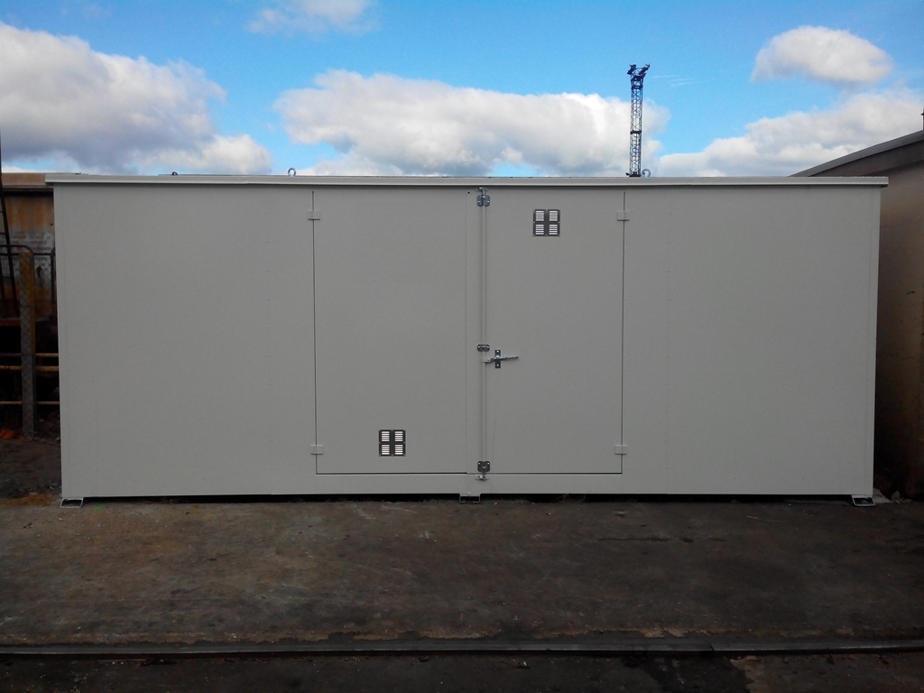 Bungalow de 6 m avec portes battantes pour une rétention de 2 x 1080 litres.