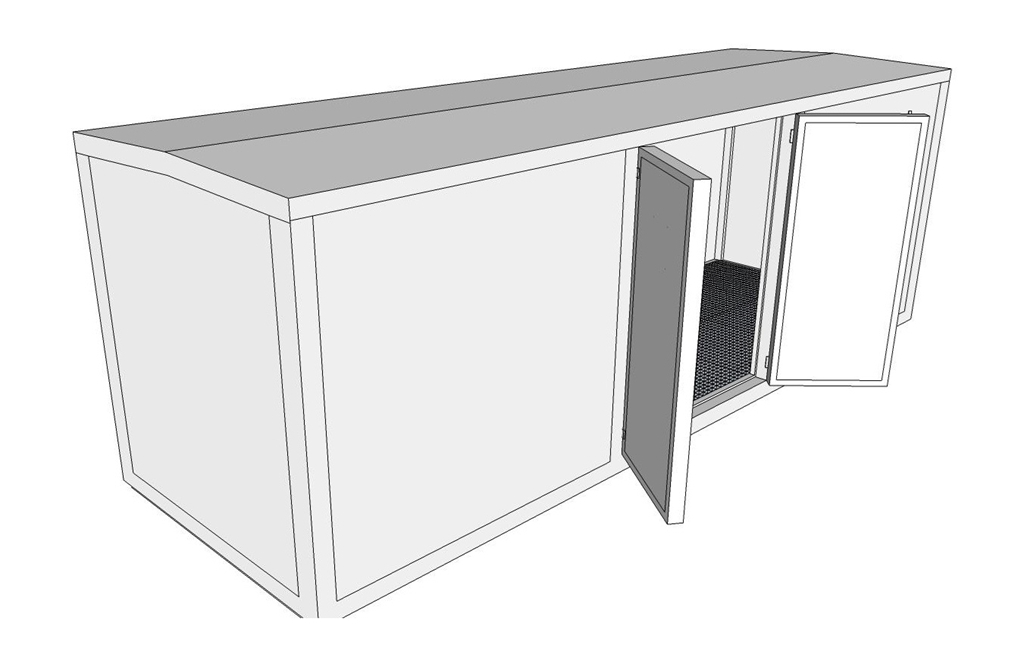 Bungalow 8 m isolé équipé coupe-feu 2 heures. Avec joints de portes intumescents et clapets coupe-feu.