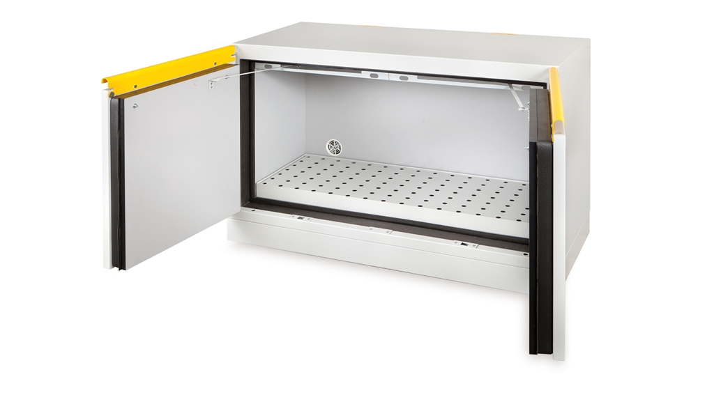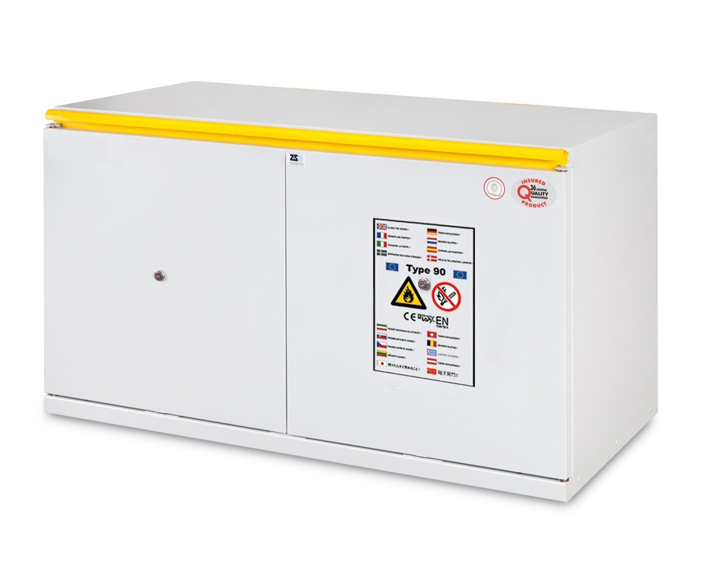 Armoire basse coupe-feu 90 minutes 2 portes avec bac de rétention.
