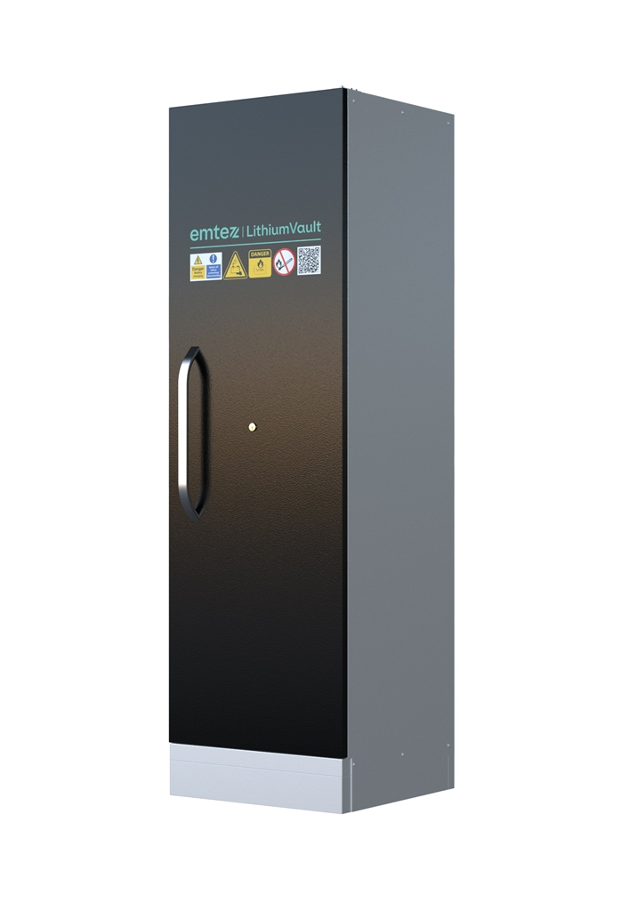 Armoire LithiumVault 1 porte pour le stockage de batteries lithium-ion. Armoire de sécurité conforme à la norme EN14470-1.