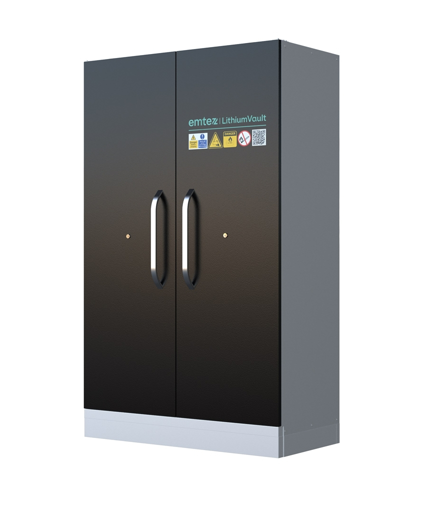 Armoire LithiumVault 2 portes conforme à la norme EN14470-1. Conçue pour le stockage de batteries lithium-ion.