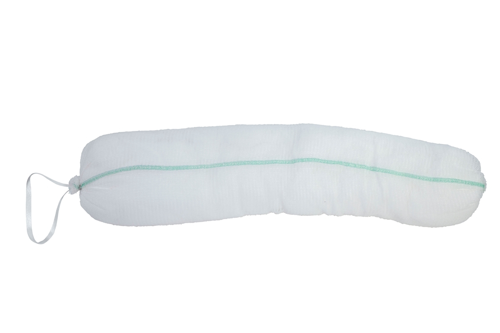 Coussin avec poignée, absorbant hydrocarbures, spécial dépollution, flocons de polypropylène, 20 cm x 1 m, couleur blanc. Sac de 4 coussins.