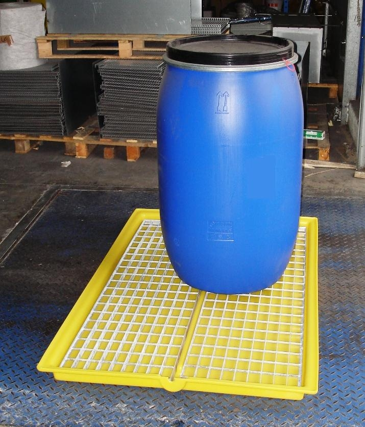 Bac de rétention en polyéthylène pour le stockage petits flacons et bidons.