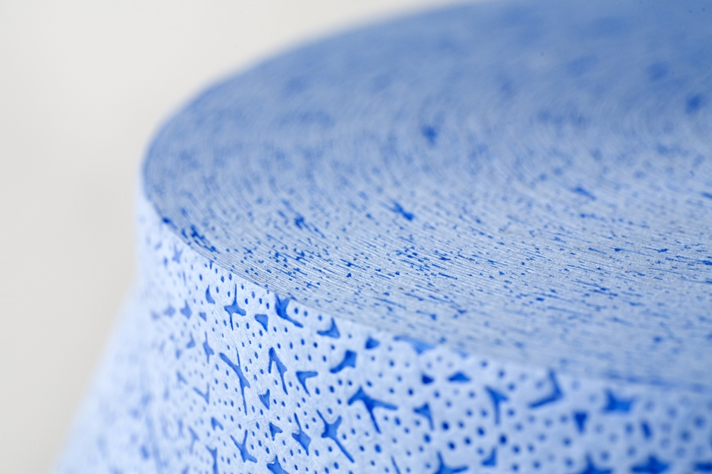 Essuyage industriel, bobine, pur fibre de polypropylène, 75 gr/m2, couleur bleu, 0,32 x 190 m. Sac de 1 bobine.