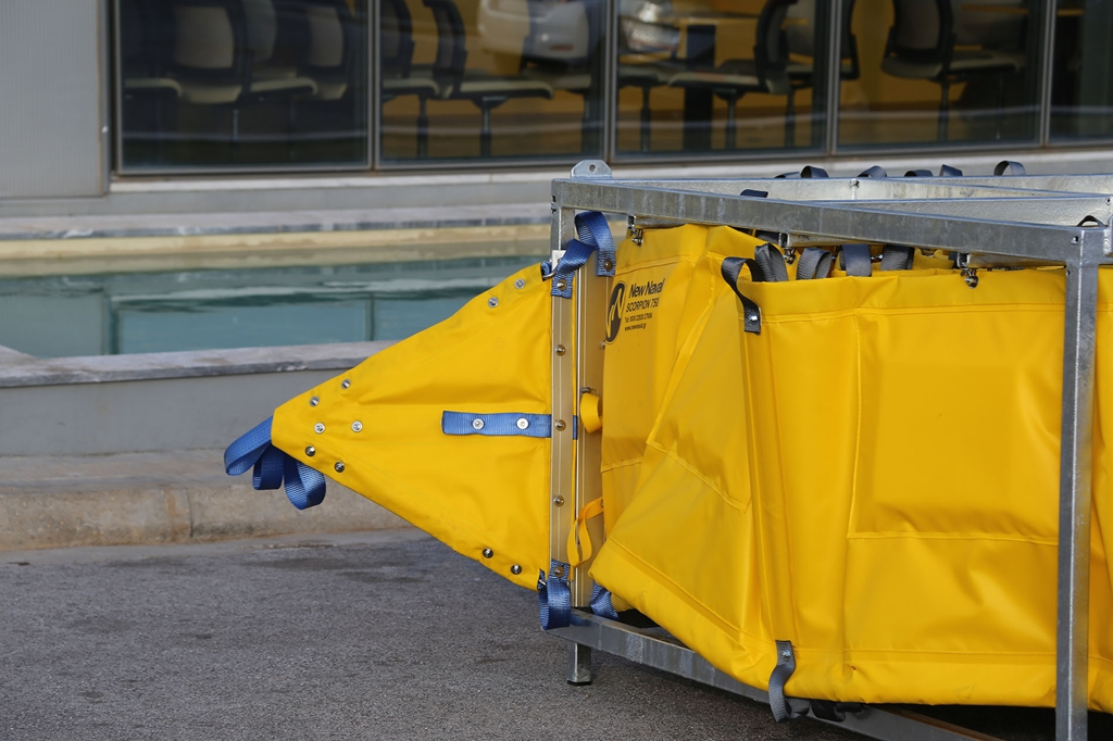 Élément de traction pour barrage qui fonctionne avec ligne de remorquage (non fourni) à connecter via manille sur la sangle en pointe.