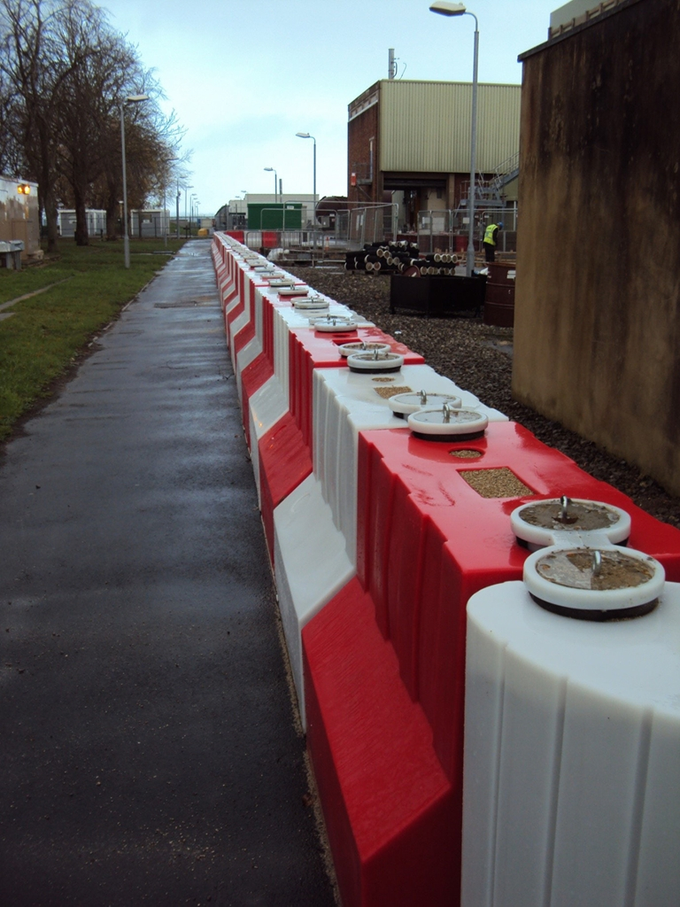 Unité Floodstop rouge préremplie de 0,90 m de haut. A placer une unité sur deux.