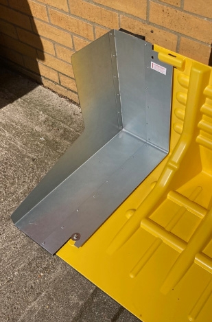 Bac de rétention conique en acier galvanisé pour le stockage de deux fûts debout de 220 litres, caillebotis amovible en acier galvanisé avec pieds en U d'une hauteur de 100 mm. Dimensions: 1220 x 815 x H 345 mm. Capacité de rétention : 220 litres