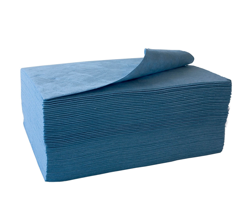 Feuille absorbante hydrocarbures, pur fibre de polypropylène, simple épaisseur, 40 x 50 cm, couleur bleu.