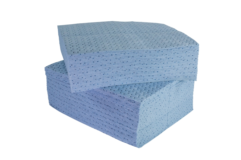 Feuille absorbante hydrocarbures, pur fibre de polypropylène, double épaisseur, 40 x 50 cm, couleur bleu.