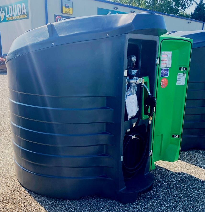 Cuve de stockage et de distribution en polyéthylène de gasoil et GNR de 2500 L.