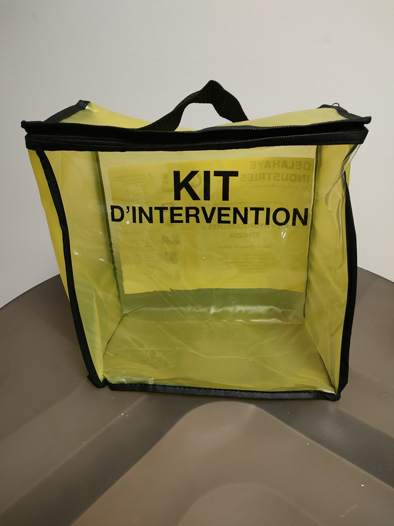 Sac de transport pour kit d'intervention avec poignée en tissu.