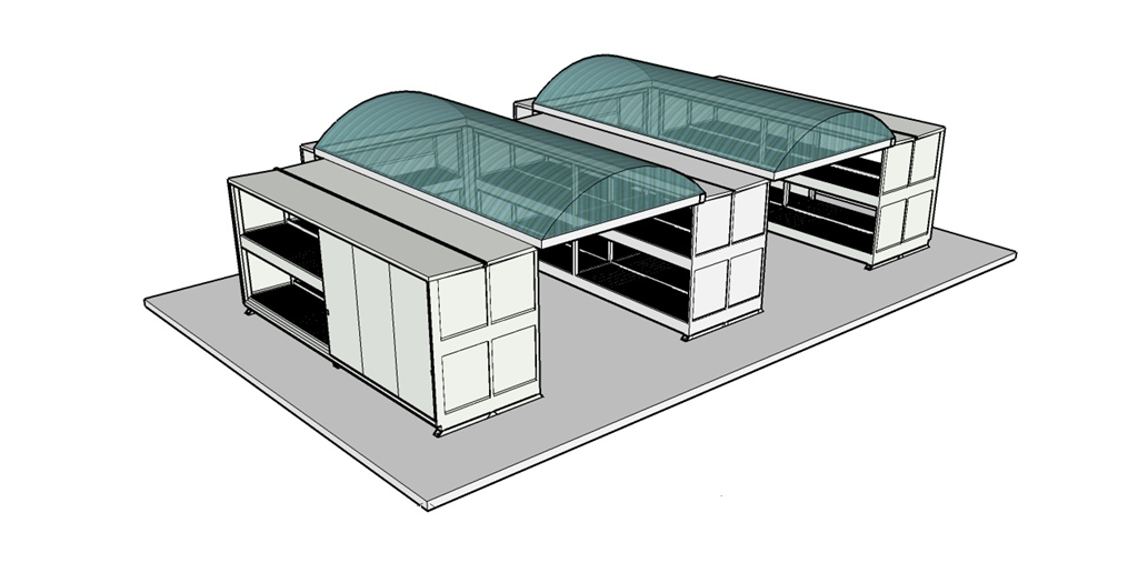 Magasin modulaire de 8 mètres 2 niveaux 2 allées