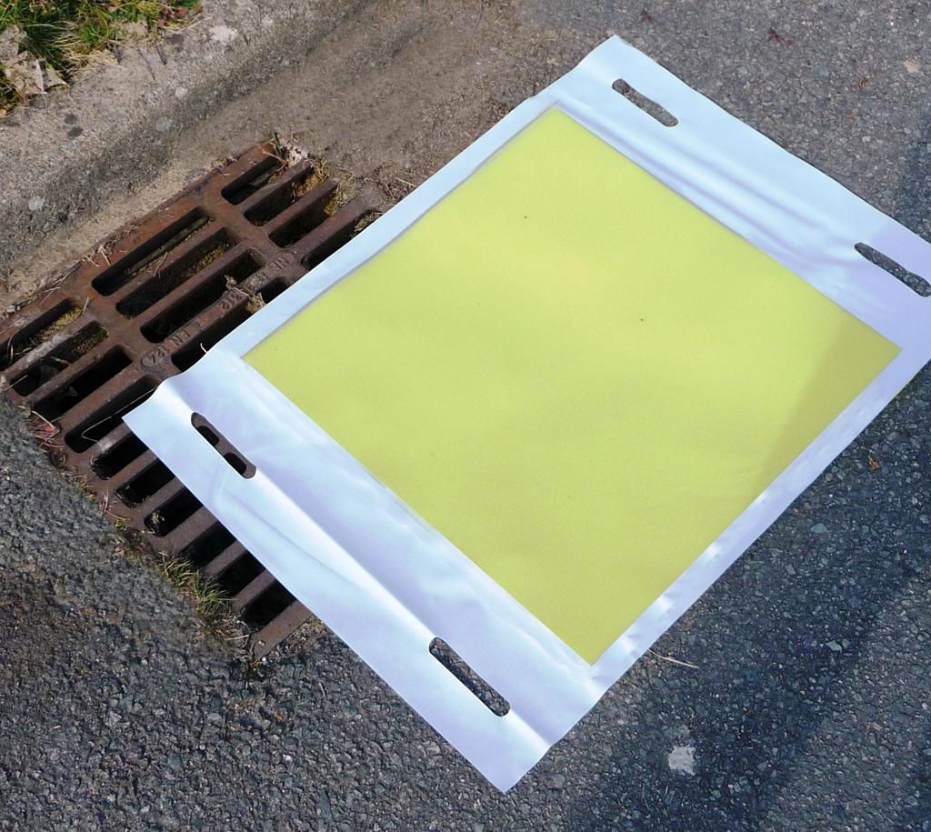 Plaque d'obturation de surface polyuréthane pour regard de visite, face adhésive très collante, manutention aisée.