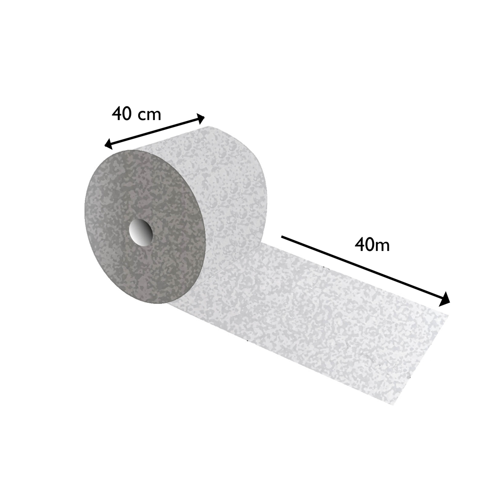 Rouleau absorbant hydrocarbures, spécial dépollution : blanc non prédécoupé. Pur fibre de polypropylène, double épaisseur, 0,40 x 40 m. Sac de 2 rouleaux.