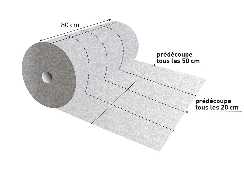 Absorbant tous liquides multidécoupe avec voile de renfort sur une face. Double épaisseur.