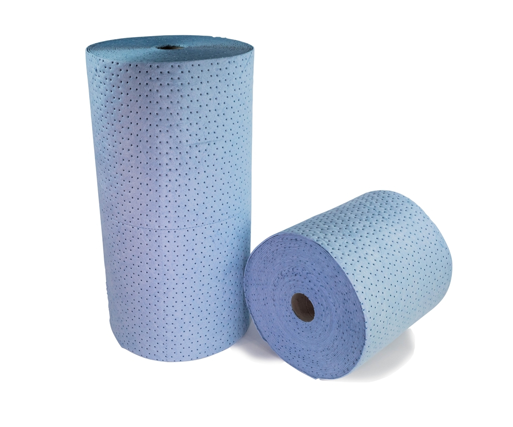 Rouleau absorbant hydrocarbures, pur fibre de polypropylène, simple épaisseur, couleur bleu.
