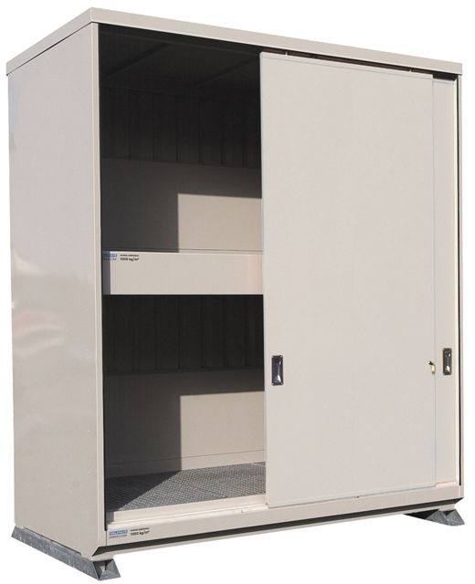 Conteneur 3 mètres 2 niveaux équipé de portes coulissantes. Simple face.