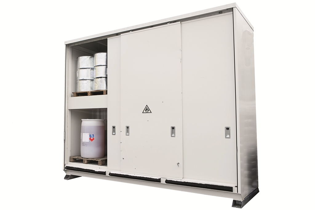 Conteneur de 4 mètres 2 niveaux avec 3 portes coulissantes montées sur 2 rails.