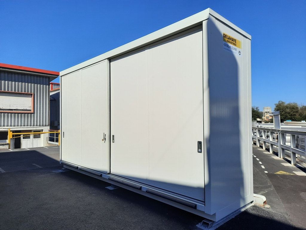 Conteneur 6 m isolé 60 mm en laine de roche haute densité (classée A2s1d0).