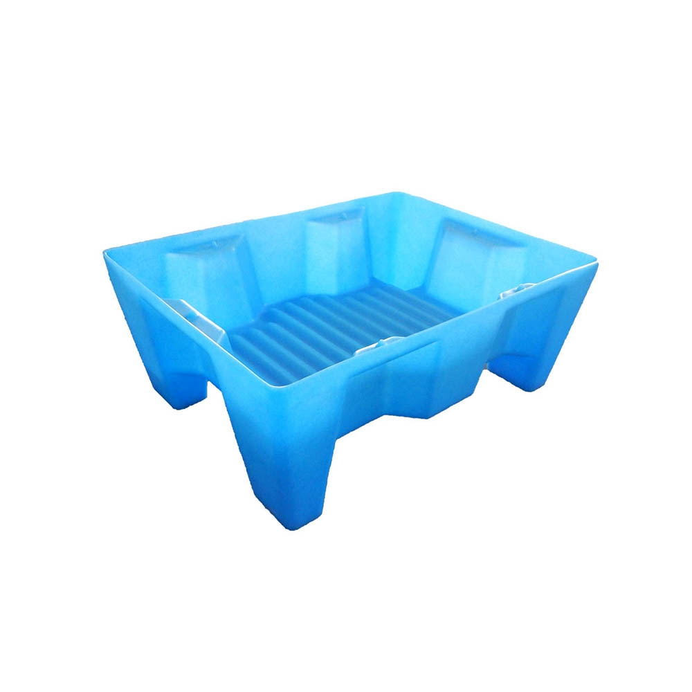Petit bac de rétention sur pied manutentionnable par transpalettte, sans caillebotis.