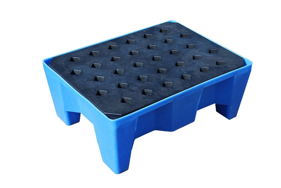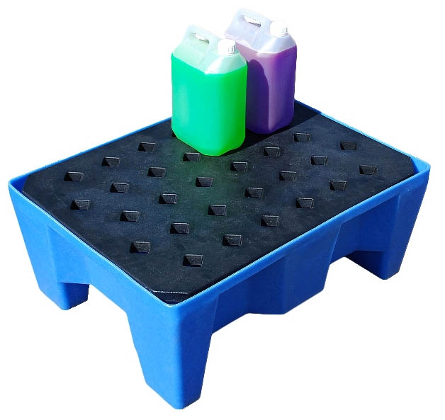 Bac de rétention conique en acier galvanisé pour le stockage de deux fûts debout de 220 litres, caillebotis amovible en acier galvanisé avec pieds en U d'une hauteur de 100 mm. Dimensions: 1220 x 815 x H 345 mm. Capacité de rétention : 220 litres