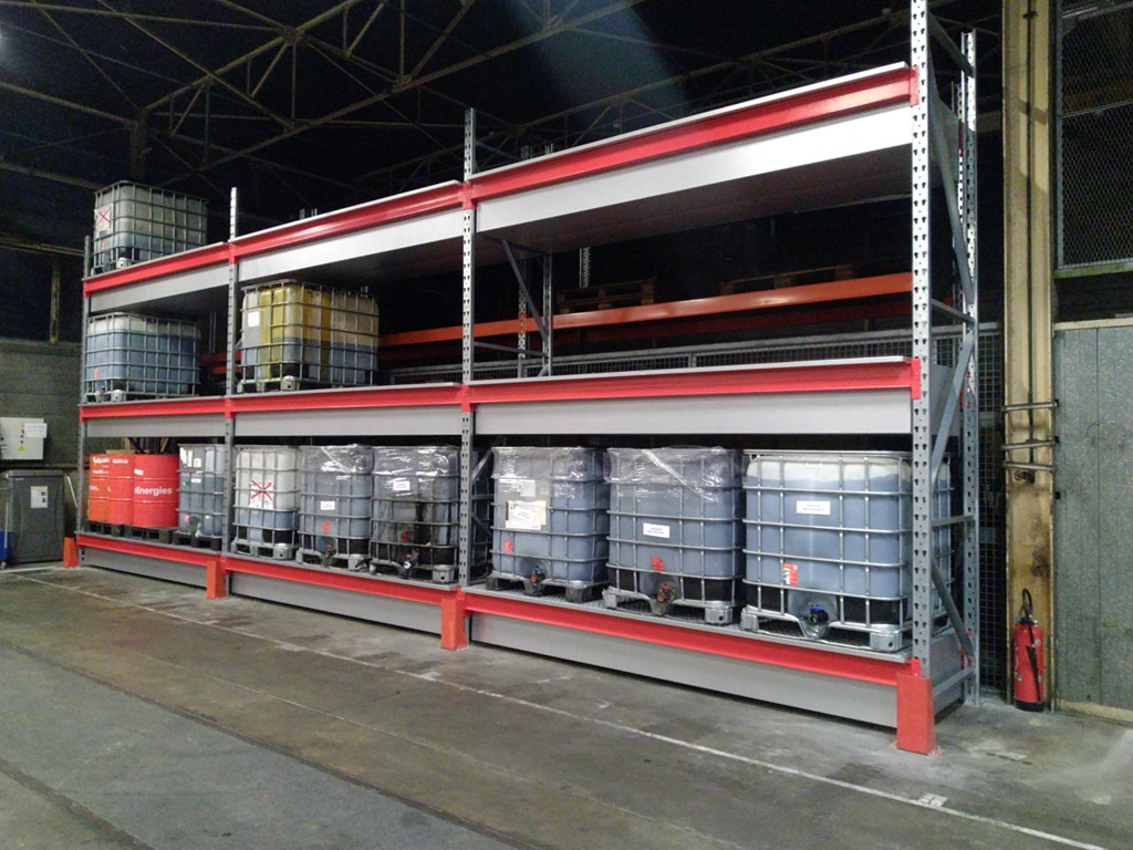 Rayonnage lourd avec rétention sur 3 niveaux et 1 travée.
