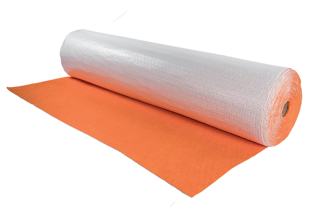 Tapis orange étanche avec voile de surface renforcé. Fibre hydrophobe qui absorbe les huiles, les hydrocarbures et ses dérivés mais pas l'eau et les liquides à base d'eau.
